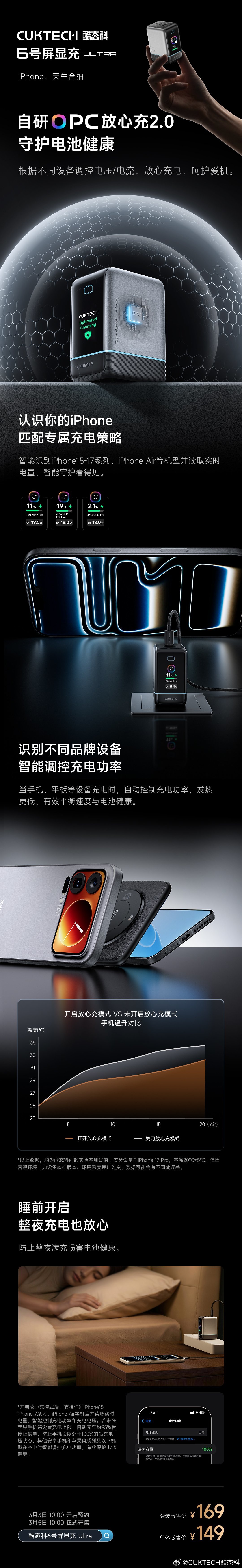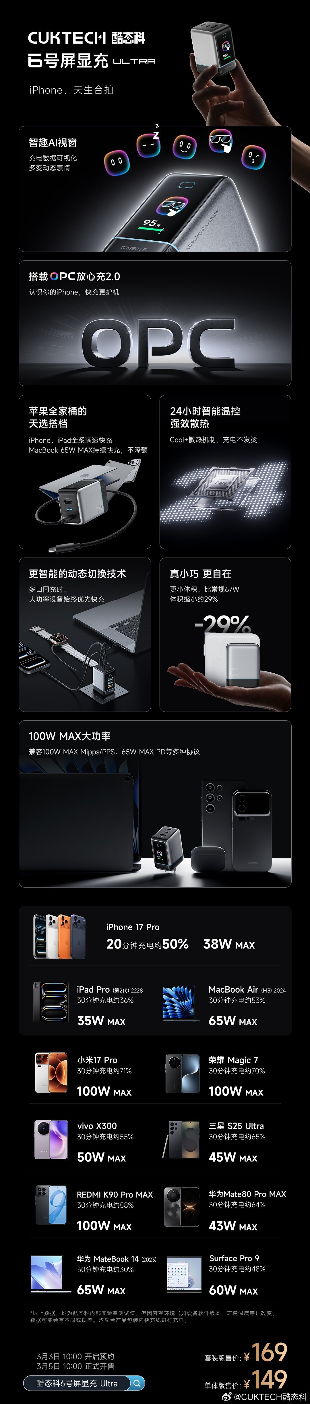 今日,酷态科6号屏显充 Ultra 正式发布,单体版售价149元,套装版售价169元(内含1米 双C 6A编织线)